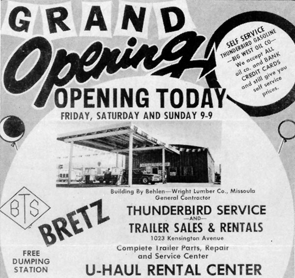 The business grew into its first building in 1970 on Kensington Ave, on the south side of Missoula, Montana. It was slightly over 2000 square feet and sat on about 2/3 of an acre of land. The building was designed to hold the largest travel trailer being sold at the time, with a tow vehicle hooked up to it. This dimension was only 40 feet! A size that ultimately would not even hold the largest vehicle we now sell, excluding the tow vehicle. In 1984 an addition of almost 1000 square feet was added to this building for office and retail space.