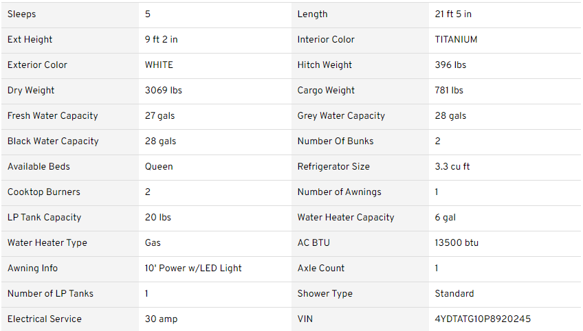 The 2023 Dutchmen RV Aspen Trail LE 17BH Travel Trailer is the smallest form factor trailer from Dutchmen RV to date! Measuring in at a length of 21ft 5in, a height of 9ft 2in, and built on a single axel frame. However, the small build of this trailer does not mean it’s lacking any essential Travel Trail necessities!
