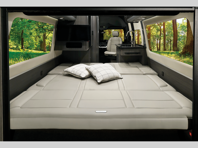It all starts with a Mercedes-Benz Sprinter 2500 van chassis with a 3.0L V6 turbo diesel engine to power your adventures. There is also a 4-wheel drive option and all-wheel drive option from Mercedes-Benz for even more stability and control. The power sofa and side seats create the largest bed in its class, and the multiplex controls put you in control of the coach's functions with the push of a button. A spacious, versatile wet bath comes standard, along with a Corian kitchen countertop, Ultraleather seating, premium Italian cabinetry, and many more luxurious features.