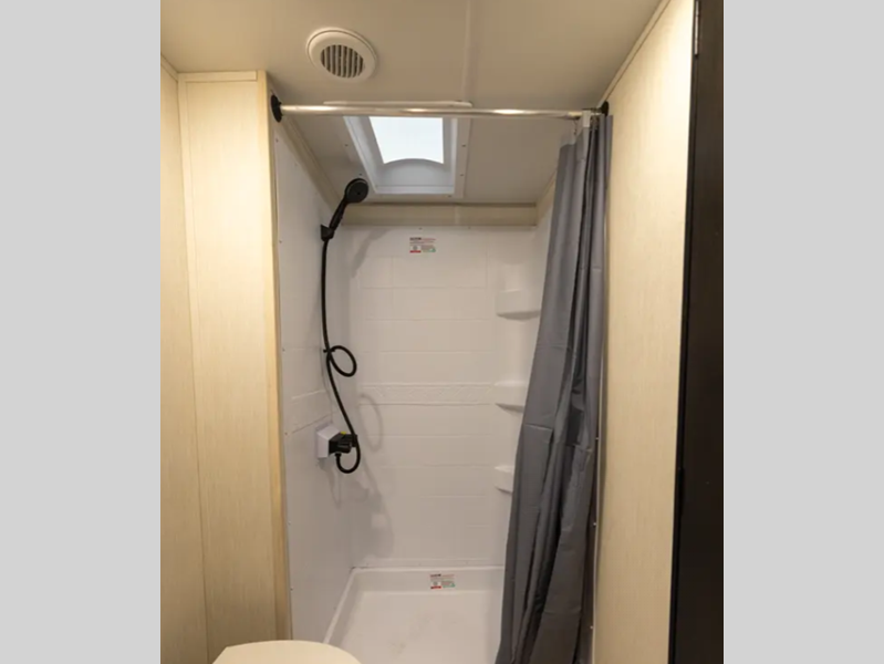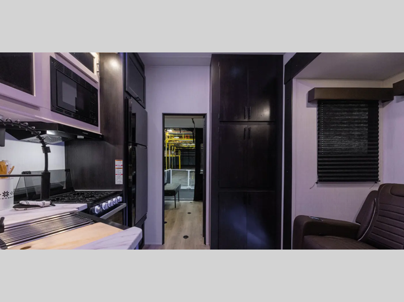 Each model is constructed with an armored underbelly tank enclosure and forced air heat to all holding tanks which will allow you to camp all year long. The outside shower with hot and cold water means you can wash off your toys after trail riding, and the power awning will provide an inviting outdoor space to relax. Inside, you'll enjoy seamless countertops, zebra shades, a tankless on demand water heater, and more convenient features.