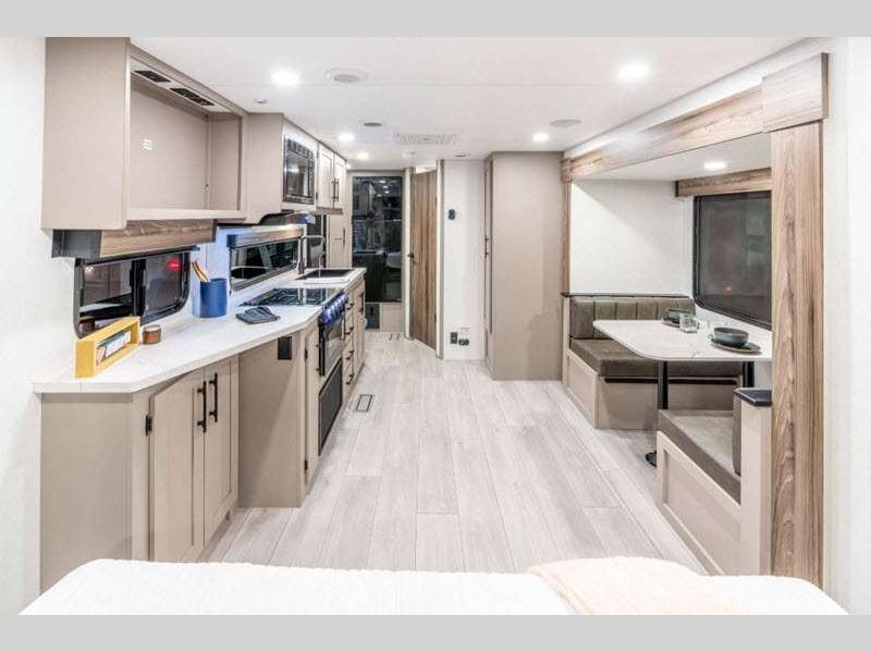 Sleeps 2 Slides 2 Length 31 ft 11 in Ext Width 8 ft Ext Height 10 ft 10 in Int Height 6 ft 6 in Interior Color Chocolate Hitch Weight 700 lbs GVWR 8800 lbs Dry Weight 6570 lbs Cargo Capacity 2230 lbs Fresh Water Capacity 45 gals Grey Water Capacity 62 gals Black Water Capacity 32 gals Tire Size 15" Furnace BTU 30000 btu Available Beds Queen Refrigerator Type 12V Refrigerator Size 10 cu ft Cooktop Burners 3 Number of Awnings 1 Axle Weight 5870 lbs LP Tank Capacity 30 lbs Water Heater Type On demand tankless AC BTU 13500 btu Awning Info 19' Power w/LED Lighting Axle Count 2 Number of LP Tanks 1 Shower Type Standard Electrical Service 30 amp Similar Floorplans