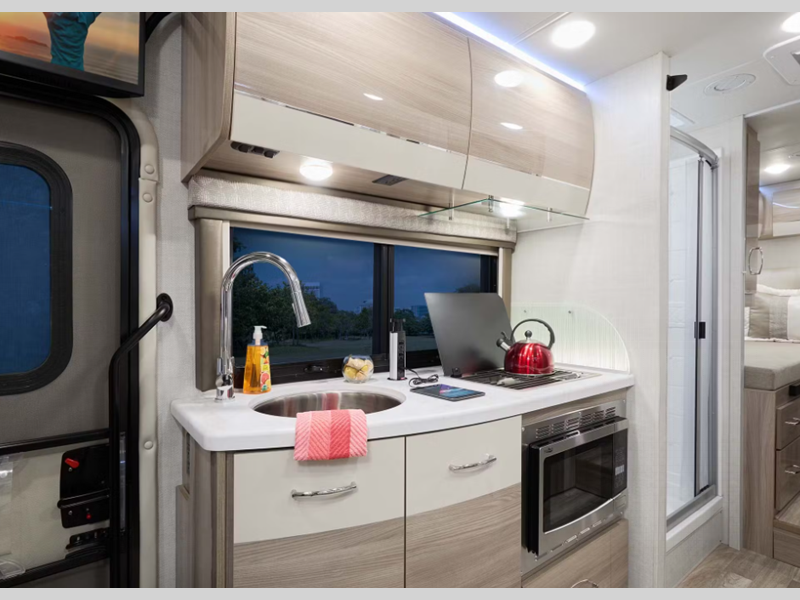 Sleeps 5 Slides 1 Length 25 ft 8 in Ext Width 7 ft 6 in Ext Height 11 ft 2 in Int Height 6 ft 8 in Interior Color Snow Leopard ll, Greystone ll Exterior Color Full-Body Paint; Fiji ll, Atlantic Blue ll, Boca ll, Summit lll Hitch Weight 5000 lbs GVWR 12125 lbs Fresh Water Capacity 30 gals Grey Water Capacity 38 gals Black Water Capacity 38 gals Furnace BTU 20000 btu Generator 4.0 kw LP Fuel Type Diesel Engine 2.0L l-4 Chassis Mercedes-Benz Sprinter Horsepower 211 hp Fuel Capacity 24.5 gals Wheelbase 170.3 in Number Of Bunks 1 Available Beds Murphy Torque 332 ft-lb Refrigerator Type 12V w/Auto Generator Start Convection Cooking Yes Cooktop Burners 2 Shower Size 24" x 36" Number of Awnings 1 LP Tank Capacity 40 lbs Water Heater Type Tankless AC BTU 15000 btu Basement Storage 34.8 cu. ft. TV Info LR 32" Smart TV Awning Info 15' Armless Power w/Integrated LED Lighting Gross Combined Weight 15250 lbs Shower Type Standard Electrical Service 30 amp Similar Floorplans