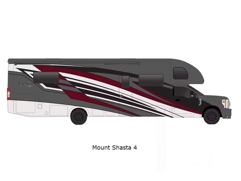 Sleeps 4 Slides 1 Length 36 ft 4 in Ext Width 8 ft 3 in Ext Height 12 ft 7 in Int Height 7 ft Interior Color Mariposa 3, Cosmic Strandz lll Exterior Color Full Body Paint; Crystal Cove lll, Mount Shasta 4, Saratoga 3, Westhaven Hitch Weight 12000 lbs GVWR 22000 lbs Fresh Water Capacity 75 gals Grey Water Capacity 40 gals Black Water Capacity 40 gals Furnace BTU 30000 btu Generator Onan RV QD 6,000 Diesel Fuel Type Diesel Engine 6.7L Power Stroke 4 x 4 V8 Turbo Chassis Ford F600 Horsepower 330 hp Wheelbase 253 in Number Of Bunks 1 Available Beds RV Queen Torque 825 ft-lb Refrigerator Type Stainless Steel Residential Refrigerator Size 16 cu ft Convection Cooking Yes Cooktop Burners 2 Shower Size 32" x 32" Number of Awnings 1 LP Tank Capacity 68 lbs Water Heater Type Tankless AC BTU 27000 btu Basement Storage 152 cu. ft. TV Info Smart TV; Cab 40", BR 32", Ext. 32" Awning Info 20' Power with LED Lights Washer/Dryer Available Yes Gross Combined Weight 43000 lbs Shower Type Radius Electrical Service 50 amp Similar Floorplans