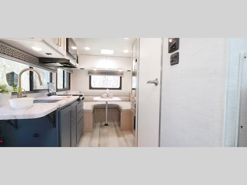 The Quantum Class C gas motorhomes by Thor Motor Coach are suitable for full-timers and weekend warriors! With a chic interior design, comfortable furniture, and technology features, traveling can't get any easier!