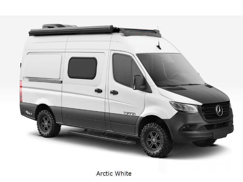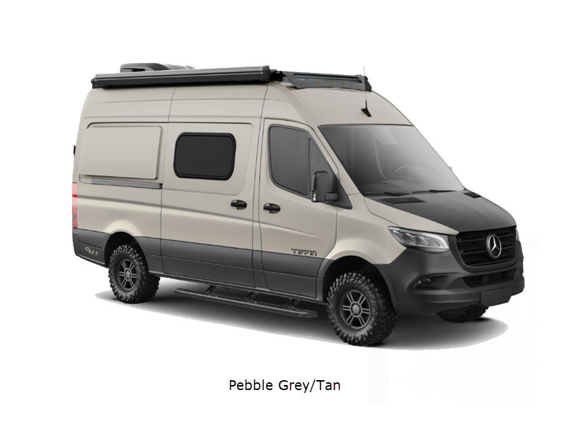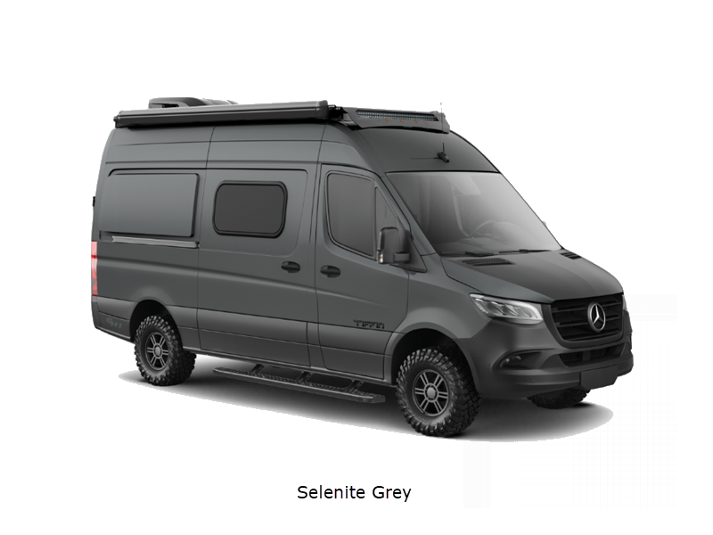 Sleeps 2 Length 19 ft 6 in Ext Width 7 ft 8 in Ext Height 10 ft Int Height 6 ft 3 in Interior Color Stargazer Exterior Color Blue Grey, Arctic White, Selenite Grey, Pebble Grey Hitch Weight 5000 lbs GVWR 9050 lbs Fresh Water Capacity 26 gals Grey Water Capacity 22 gals Black Water Capacity 4.5 gals Tire Size LT 245/70R 17 Fuel Type Diesel Engine 2.0L 4-Cylinder Twin Scroll Turbo Chassis Mercedes-Benz 2500 Sprinter Cargo Van AWD Horsepower 208 hp Fuel Capacity 24.5 gals Torque 332 ft-lb Refrigerator Type 12 Volt Refrigerator Size 3.1 cu ft Cooktop Burners 1 Shower Size 24" x 36" Number of Awnings 1 AC BTU 15000 btu Awning Info Girard Side Mount Power w/LED Lights Gross Combined Weight 13930 lbs Shower Type Wet/Bath Shower Electrical Service 30 amp