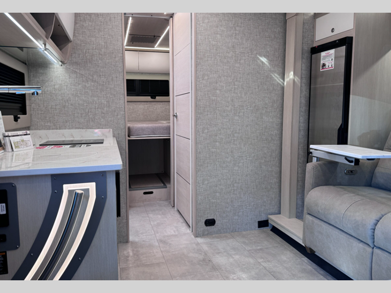 Sleeps 5 Slides 1 Length 25 ft 8 in Ext Width 7 ft 6 in Ext Height 11 ft 4 in Int Height 7 ft 2 in Interior Color Sedona, Grandview Exterior Color Coastal Blue, Silver Sand, Sea Mist Gen 7 Paint Schemes Hitch Weight 5000 lbs GVWR 11030 lbs Fresh Water Capacity 32 gals Grey Water Capacity 30 gals Black Water Capacity 26 gals Tire Size LT215/85R16 Furnace BTU 30000 btu Generator 4-Kilowatt RVMP Flex Power LP Fuel Type Diesel Engine 2.0L V4 Turbo Diesel Chassis Mercedes-Benz Dual Wheel Cutaway 3500XD Horsepower 208 hp Fuel Capacity 24.5 gals Wheelbase 170.3 in Number Of Bunks 1 Available Beds Twin Beds with King Conversion Torque 332 ft-lb Refrigerator Type Gas/Electric Refrigerator Size 5 cu ft Convection Cooking Yes Cooktop Burners 2 Shower Size 24" x 32" Number of Awnings 1 Axle Weight Front 4410 lbs Axle Weight Rear 7720 lbs LP Tank Capacity 12 gals AC BTU 15000 btu Basement Storage 93 cu. ft. TV Info LR TV Awning Info Girard Side-Mounted Power w/LED Lighting and Speakers Gross Combined Weight 15250 lbs Shower Type Standard Electrical Service 30 amp Similar Floorplans