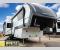 When you want travel accommodations to feel just like home! This Model Z luxury fifth wheel is bright and modern on the inside, with loads of amenities that will have you dreaming of your next trip! Enter and find a spacious combined living/kitchen space thanks to dual opposing slides. There is ample seating with a free standing dinette that includes a built-in utensil drawer, 62" theater seating, and a 72" tri-fold sofa along the rear wall. You can easily relax and enjoy the 50" Smart telescoping TV with a cozy fireplace below. The kitchen offers all that you need to prepare and cook meals just like home with a 16 cu. ft. refrigerator for your perishables, a 30" microwave oven, and three burner range top and oven. You will love the integrated spice rack, and the kitchen island all outfitted with dog bowls and double pull out trash bins with an integrated Stow & Go paper towel holder. There is also an 84" pantry with adjustable shelves for all of your canned and dry goods. Head up the steps to a private master suite with king bed slide. You can opt for the queen bed if you like. A sliding dresser top features hidden storage which is perfect for jewelry and other personal belongings. The front wardrobe features mirrored doors and the corner closet has been prepped for a stackable washer and dryer if you choose to add that option. Relax and enjoy a large bath featuring a linen cabinet, a 30" x 42" shower, and vanity with sink, plus medicine cabinet. You will also appreciate having dual showers on the outside of this unit, and a rear baggage door and mid-coach pass-through storage.